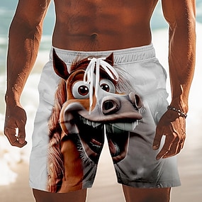 Homens Animal Mula / Burro Engraçado Calção Justo de Natação Shorts de Natação Bermuda de Surf Cintura Média Roupa de rua Havaiana Casual Diário Feriado Com Cordão Bolsos Cintura elástica Designer