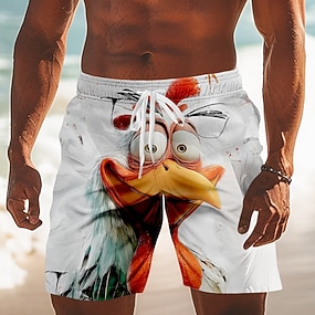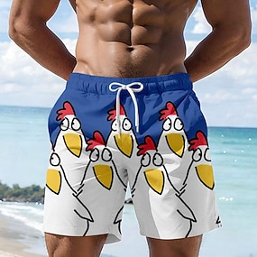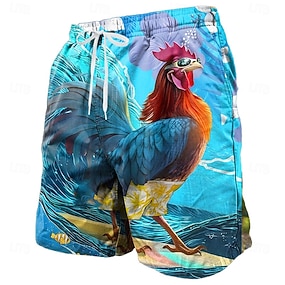 Homens Animal Galo Engraçado Calção Justo de Natação Shorts de Natação Bermuda de Surf Cintura Média Roupa de rua Havaiana Casual Diário Feriado Bolsos Com Cordão Cintura elástica Designer Roupa