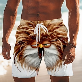 Homens Animal Gato Engraçado Calção Justo de Natação Shorts de Natação Bermuda de Surf Cintura Média Roupa de rua Havaiana Casual Diário Feriado Com Cordão Bolsos Cintura elástica Designer Roupa