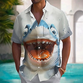 Homens Animal Desenho Animado Tubarão Calção Justo de Natação Shorts de Natação Bermuda de Surf Cintura Média Engraçado férias na praia Bolsos laterais Forro de malha Cintura elástica com cordão