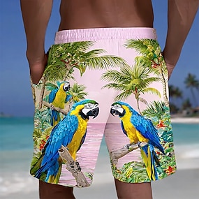 Homens Animal Papagaio Calção Justo de Natação Shorts de Natação Bermuda de Surf Cintura Média Moda Roupa de rua Havaiana Casual Diário Feriado Bolsos Com Cordão Cintura elástica Designer Roupa