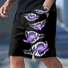 Homens Desenho Animado Monstro Shorts de Natação Bermuda de Surf Calção de Banho Cintura Média Havaiana férias na praia Bolsos laterais Forro de malha Cintura elástica com cordão Designer Roupa