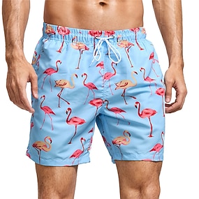 Homens Flamingo Plantas Tropicais Calção Justo de Natação Shorts de Natação Bermuda de Surf Cintura Média Estampa 3D Havaiana Surf Feriado Praia Com Cordão com forro de malha Cintura elástica Designer