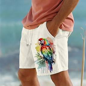 Homens Pássaro Papagaio Shorts de algodão e linho Calção Cintura Média Havaiana Vintage retrô Férias Dia a Dia Feriado Com Cordão Bolsos Cintura elástica Designer Roupa