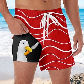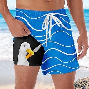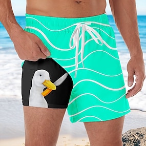 Homens Animal Engraçado Pato Shorts Forrados Shorts de Natação 2 em 1 Shorts de Natação Cintura Média Havaiana Férias Feriado Bolsos laterais Com forro de compressão Cintura elástica com cordão