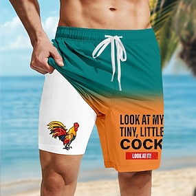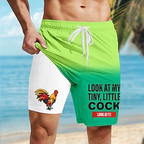 Homens Desenho Animado Galo Pintinho Calção Justo de Natação Shorts de Natação Bermuda de Surf Cintura Média Engraçado Havaiana férias na praia Bolsos laterais Forro de malha Cintura elástica com