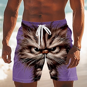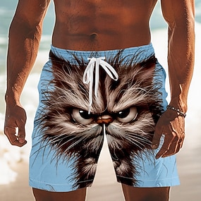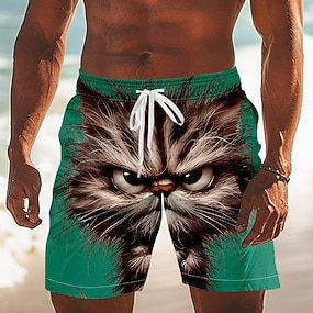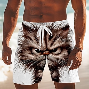 Homens Animal Cara brava Gato fofinho Calção Justo de Natação Shorts de Natação Bermuda de Surf Cintura Média Engraçado Ao ar livre Férias Bolsos laterais Forro de malha Cintura elástica com cordão