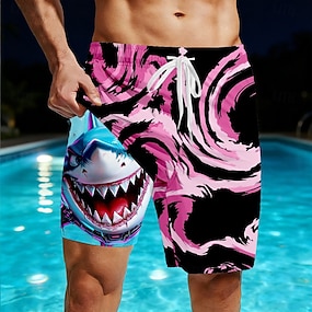 Homens Tubarão animais de desenho animado Calção Justo de Natação Shorts de Natação Bermuda de Surf Cintura Média Engraçado férias na praia Bolsos laterais Forro de malha Cintura elástica com cordão