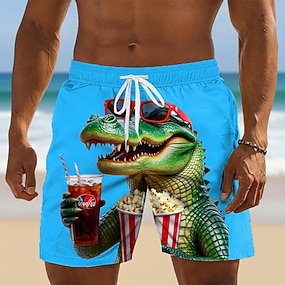 Homens Desenho Animado Crocodilo Cobrir os olhos Calção Justo de Natação Shorts de Natação Bermuda de Surf Cintura Média Havaiana Engraçado férias na praia Bolsos laterais Forro de malha Cintura