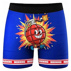 Homens Desenho Animado Com letras estampadas Bombear Cuecas Boxer Elásticas Calção de Banho Shorts de natação boxer Engraçado Casual Casa férias na praia Cintura elástica Absorção de umidade Roupa