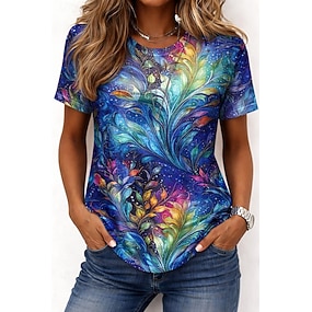 Mulheres Camiseta Imprimir Floral Gráfico Cores Gradiente à moda Clássico Casual Manga Curta Gola Redonda Decote Redondo Tops longos Casual Diário Azul Laranja Verão Primavera Outono