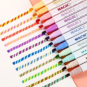 6/12 pçs conjunto de marcadores de mudança de cor mágica, ponta de cinzel de ponta dupla 12 marcadores fluorescentes de cores suaves, diário de caneta de arco-íris desenhos animados diy notas pintura, decoração de páscoa, materiais de arte