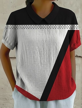 Mulheres Camisa Social Blusa Camisa com babados Patchwork Tecido à moda Clássico Moderno Manga Curta Decote V Tops regulares Diário Feriado Para Noite Preto Branco Rosa Verão Primavera
