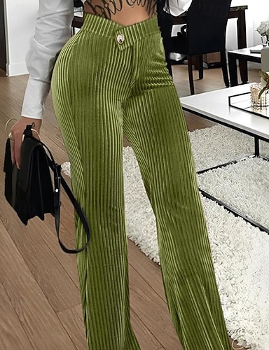 Mulheres Perna larga Calças de Veludo Roupa de rua à moda Comprimento total Natural Tecido Cintura elástica Confortável Rua Feriado Final de semana Ferrugem Azul marinho Preto Verde Outono Inverno