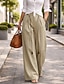 Mulheres Calças de linho de algodão Perna larga chinês Calça verão Férias Roupa de rua Básico Comprimento total Cintura Média Tecido Bolsos Cintura elástica Confortável Sem Elasticidade Diário Ao ar