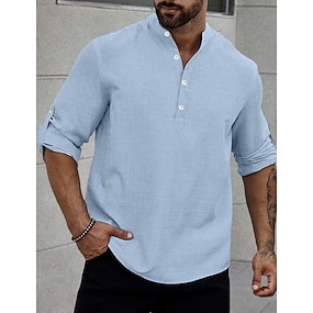 Homens Camisa Social Camisa de linho Camisa Popover camisa de verão Roupa de Praia Tecido Férias Casual Amarelo Claro Preto Branco Azul Marinha Manga Longa Henley Verão Primavera Roupa Botões