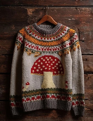 Mulheres Suéter Vintage Moda Casual Gráfico Geométrica Gola Redonda Tricotado Manga Longa Tops regulares Tricotar Trabalho Diário Vermelho Laranja Outono Inverno