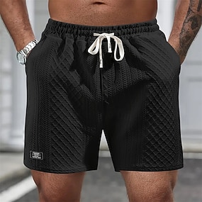 Homens Waffle Calção Shorts de verão Shorts de praia Com Cordão Cintura elástica Côr Sólida Conforto Comprimento do joelho Diário Ao ar livre Streetwear Férias Moda Azul Preto Micro-Elástica
