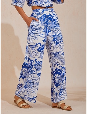 Calças de perna larga azuis com visual de linho arejado da St. Barth Blooms