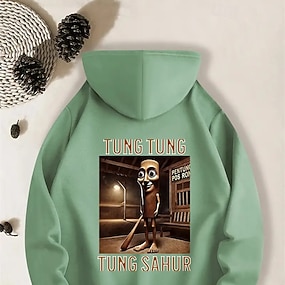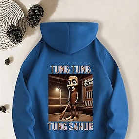 Camiseta azul para meninos com estampa de personagem de desenho animado - design tung tung tung sahur manga curta verão primavera moda básica crianças 4-12 anos gola redonda casual ao ar livre ajuste