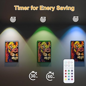 Luz de Pintura Recarregável USB Luz Para Quadros 13 Cores Controle Remoto Sem Fio Dimerizável Temporizador Mudança de Cor Mini Spotlight Indoor Galeria de Arte Decoração de Moldura de Fotos 1/2pcs