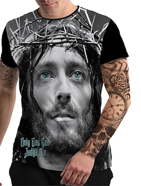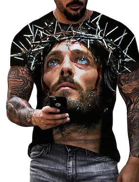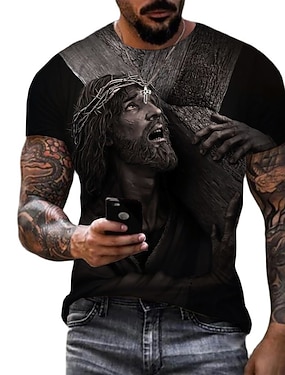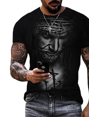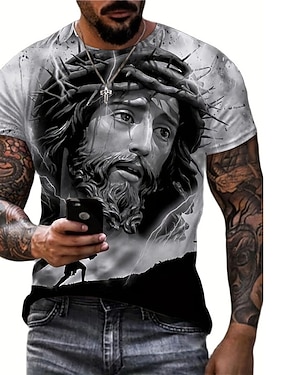 Camisa Cruzados Masculina Leão Cruz Jesus T Shirt de Manga Curta T shirt Impressão 3D Camisa de Gola Redonda Simples Religiosa Estilo de Rua Rua Casual Preto 1 Azul 2 Azul 1 Verão Primavera Roupa