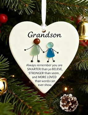 Enfeite de coração em vidro do mar para minha neta/neto, presente da vovó para a neta, enfeites artesanais em vidro do mar, decoração personalizada, presente único e carinhoso da vovó ou do vovô.