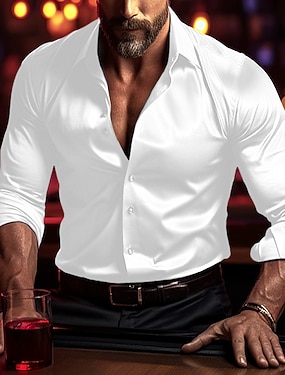 Homens Camisa Social Blusa de cetim Camisa casual camisa de botão Tecido Casamento Férias Azul Claro Preto Branco Vinho Manga Longa Lapela Primavera & Outono Roupa