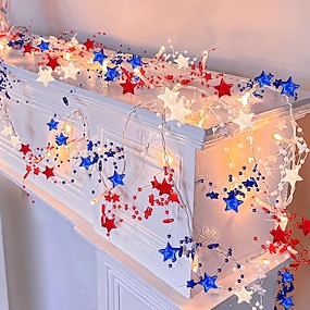Luzes patrióticas para decoração do 4 de julho, comemoração do 250º aniversário, luzes vermelhas, brancas e azuis, guirlanda de 4 de julho com 40 LEDs e 4 metros de comprimento para decoração de casa