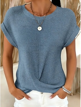 Mulheres Tops tricotados texturizados Camiseta Gráfico Tecido à moda Clássico Manga Curta Gola Redonda Tops regulares Diário Ginásio Esportes Branco Verão Primavera