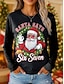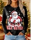 Natal Mulheres Túnica Gráfico Papai Noel Vintage à moda Clássico Manga Longa Gola Redonda Tops regulares Diário Imprimir Branco Rosa Vermelho Outono Inverno