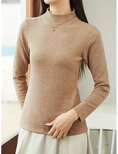 Mulheres Roupa interior térmica Casual Conforto Cor imaculada Casa Diário Manga Longa Gola Alta Preto Branco Amarelo Camelo Cáqui Primavera Outono Inverno Normal