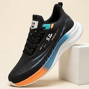 tênis de corrida masculino gradiente – tênis esportivos leves e acolchoados em preto, roxo e laranja para esportes de alto desempenho