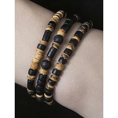 conjunto de pulseiras de couro multicamadas masculinas – pulseiras tribais de tecido boho com ajuste ajustável para roupas casuais e festivais de música