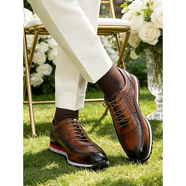 tênis masculinos de couro bovino premium marrom com detalhes perfurados e fecho de cadarço – calçados casuais elegantes para uso diário