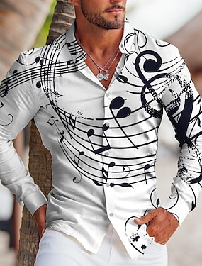 Homens Diretores de bordo Notas Camisa Social camisa de botão Manga Longa Tropical Moda Designer Ao ar livre Casual Diário Outono & inverno Aberto para a Lateral Imprimir Botão para baixo Branco Rosa