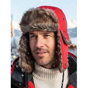 chapéu de caçador forrado de pele para o Natal masculino – à prova d'água, quente e aconchegante, com detalhes em pele sintética, ideal para férias de inverno e atividades ao ar livre