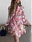 Mulheres Minivestido Vestido Envelope Vestido A Line Casual Diário Normal Floral Gráfico Manga Longa Decote V Branco Rosa Vinho Vermelho Primavera Outono