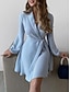 Mulheres Minivestido Vestido Envelope Vestido A Line Casual Diário Feriado Normal Tecido Manga Longa Decote V Rosa Verde Verde Tropa Damasco Primavera Outono