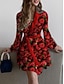 Natal Mulheres Minivestido Vestido A Line Casual Diário Normal Floral Gráfico Bloco de cor Manga Longa Gola Redonda Azul marinho Preto Vermelho Azul Royal Primavera Outono Inverno