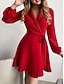 Mulheres Minivestido Vestido de Natal Vestido casual Moda Clássico Moderno Ao ar livre Férias Feriado Normal Tecido Manga Longa Decote V Vermelho Verão