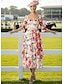 Linha A Longuette Vestidos de cocktail Vestidos para convidadas de casamento Elegante Sem Manga Decote V Festa de Jardim Formal Cetim com Estampa floral Pregas Franzido