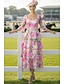 Linha A Até o Tornozelo Vestidos de cocktail Elegante Floral Split alta Manga Curta Ombro a Ombro Casamento Formal Chiffon Tecido Que Estica com Pregas Franzido Bolsos