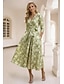 Linha A Até o Tornozelo Longuette Vestido floral Vestidos de cocktail Elegante Floral Manga 3/4 Decote V Festa de Jardim Casamento Bolsos Organza Jacquard com Laço(s) Pregas