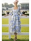 Linha A Longuette Tiered Dress Vestidos de cocktail Elegante Floral Manga 3/4 Decote Princesa Festa de Jardim Casamento Renda com Estampa floral Bordado