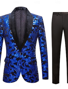 Homens Jaqueta Blazer Smoking Xale Festa Brilhante Casual Padrão Preto Prateado Vinho Moderno Comum 1 Butão