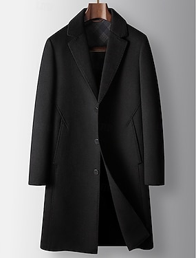 Sobretudo masculino de lã, blazer de tweed, casaco comprido, gola entalhada, estilo vintage clássico para escritório, blazer de cor sólida, preto e cinza, corte sob medida, abotoamento simples com