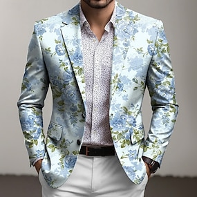 Homens Estampa floral Jaqueta Blazer Casaco Confortável Respirável Artistíco Casual Diário Formal Traje de festa para noite Impressão 3D Botões Bolso multi Primavera Outono & inverno Entalhe Manga