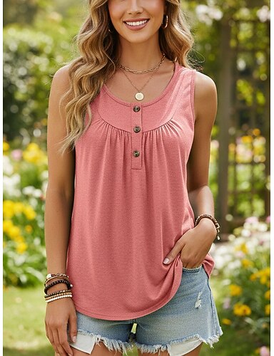 Mulheres Camisola Regata Franzido Côr Sólida Diário à moda Casual Sem Manga Com Alças Tops regulares Diário Para Noite Roupas de férias Branco Rosa Fúcsia Verde Verão Primavera