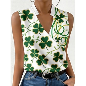 Dia de São Patrício Mulheres Camiseta T-shirt Imprimir Gráfico Trevo Moda Clássico Casual Sem Manga Decote V Tops regulares Diário Para Noite Final de semana Verde Verão Primavera